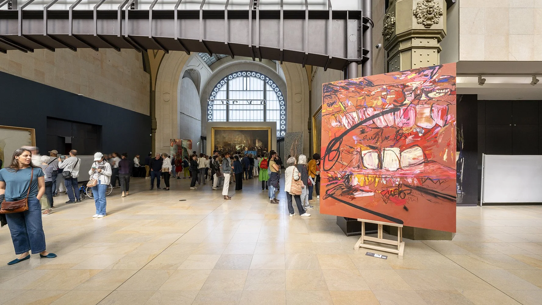 Dora Jeridi MOUTH RAID 250x210cm huile, bâton d'huile, fusain et bombe aérosol sur toile 2023 Avec Gustave Courbet